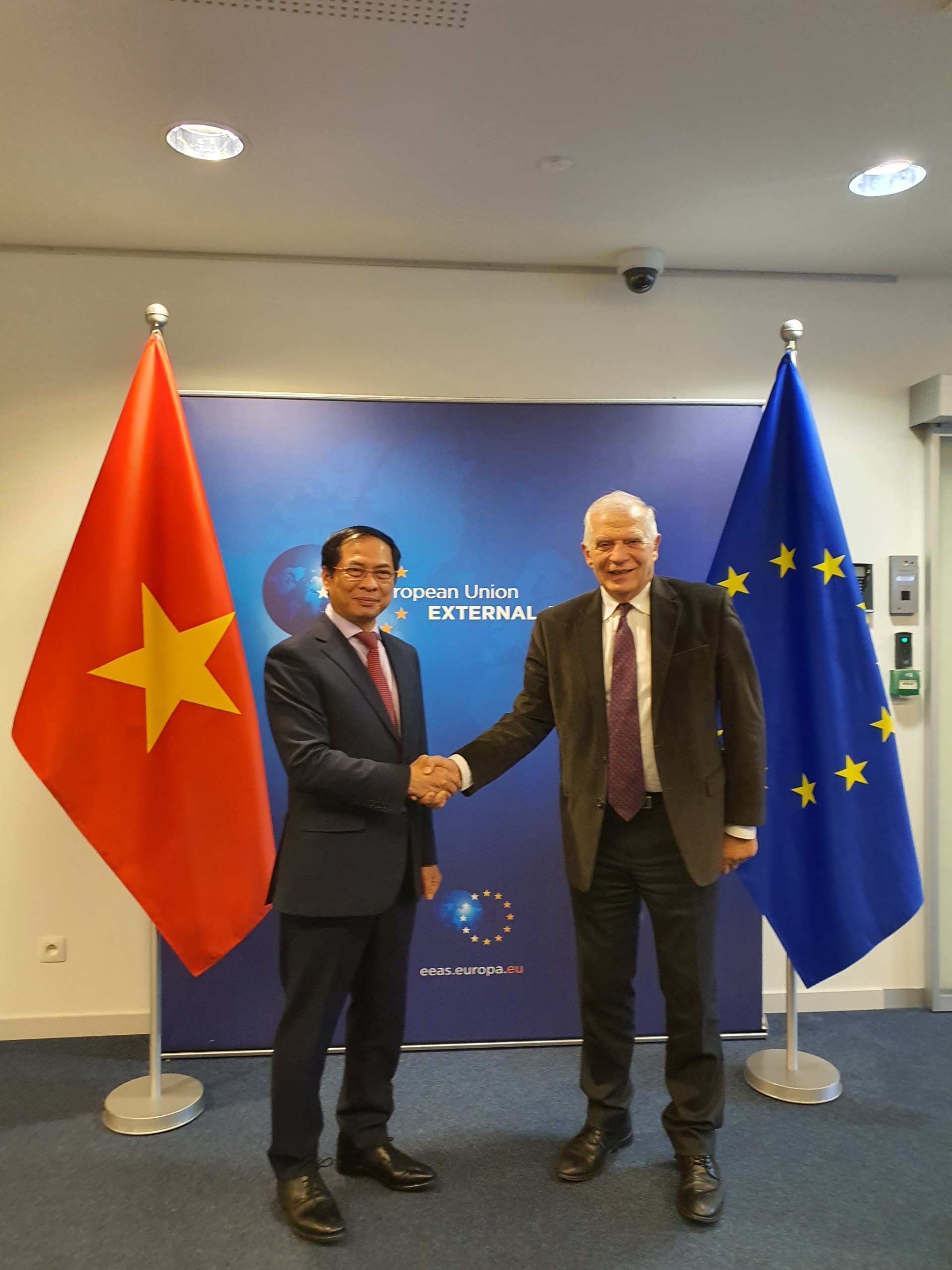 Chiều 13/12, tại Vương quốc Bỉ, Bộ trưởng Ngoại giao Bùi Thanh Sơn có cuộc gặp với Đại diện cấp cao Liên minh châu Âu (EU) về Chính sách An ninh và Đối ngoại, Phó Chủ tịch Ủy ban châu Âu, Josep Borrel.