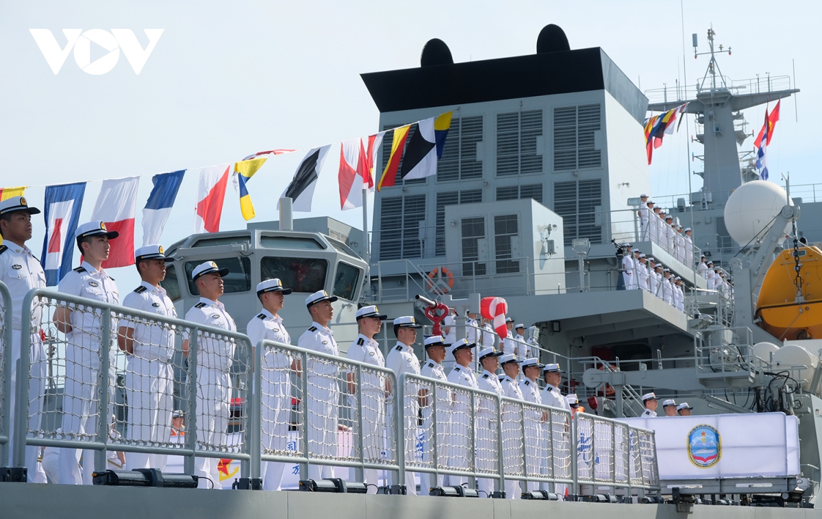 Đoàn công tác tàu Hải quân Trung Quốc sẽ tiến hành luyện tập chung vận động đội hình với Tàu hải quân Nhân dân Việt Nam và tham gia các hoạt động giao lưu thể thao với Bộ Tư lệnh Vùng 3 Hải quân. Ảnh: Thành Long/VOV |