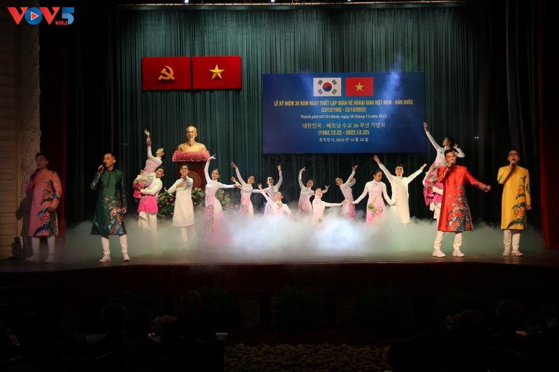Chương trình có các tiết mục văn nghệ đặc sắc do các nghệ sĩ Việt Nam và sinh viên, học sinh Hàn Quốc biểu diễn. Ảnh: Ngọc Xuân/ VOV |