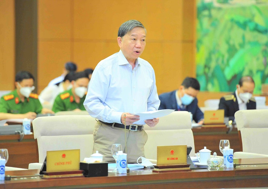 Bộ trưởng Bộ Công an Tô Lâm phát biểu tiếp thu giải trình tại Phiên họp - Ảnh: Minh Đức/TTXVN |