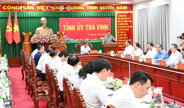 Phát biểu tại buổi làm việc, Thủ tướng Phạm Minh Chính đã phân tích tiềm năng thế mạnh, cơ hội nổi trội, lợi thế cạnh tranh, những khó khăn thách thức của tỉnh và kỳ vọng Trà Vinh ngày càng khẳng định vai trò, vị thế quan trọng trong vùng đồng bằng sông Cửu Long. Thủ tướng chỉ rõ lãnh đạo tỉnh phải nỗ lực lớn hơn, đổi mới tư duy, nhận thức, cách tiếp cận và tổ chức thực hiện khoa học, hiệu quả những giải pháp phát triển kinh tế của tỉnh.