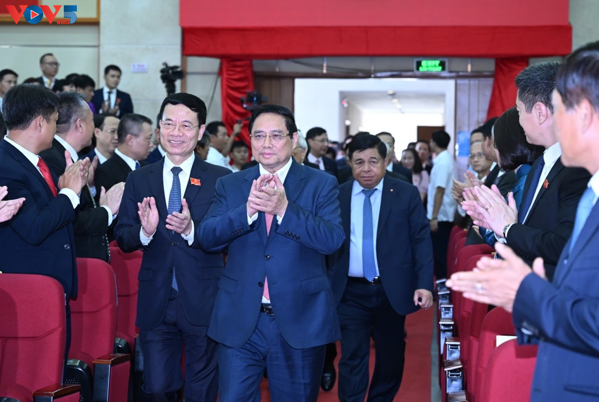 Thủ tướng Chính phủ Phạm Minh Chính dự Đại hội Đảng bộ Bộ Khoa học và Công nghệ. Ảnh: Lại Hoa/VOV |