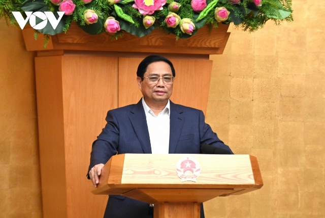 Thủ tướng Phạm Minh Chính phát biểu khai mạc phiên họp Chính phủ thường kỳ tháng 9/2023 với 63 địa phương. Ảnh: VOV |