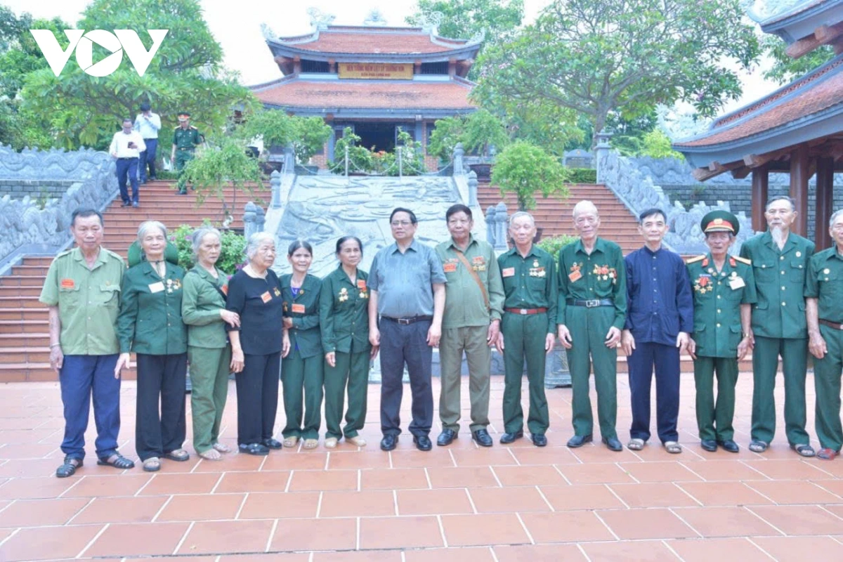 Ngay sau đó, Thủ tướng Phạm Minh Chính và đoàn công tác đã dâng hương, thả hoa và kiểm tra việc nâng cấp, tôn tạo Di tích lịch sử bến phà II Long Đại - nơi hy sinh của 16 thanh niên xung phong tỉnh Thái Bình (cũ) thuộc C130 Thanh niên xung phong, trong đó có 15 người hy sinh trong trận bom của Mỹ vào ngày 19/9/1972.
