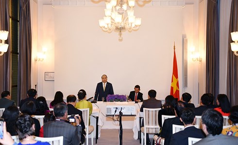 | Thủ tướng Nguyễn Xuân Phúc thăm hỏi đại diện bà con Việt kiều tại Đan Mạch. |