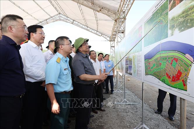 Thủ tướng Phạm Minh Chính và đoàn công tác khảo sát, kiểm tra tiến độ dự án Cảng hàng không Sa Pa tại xã Cạm Cọn, huyện Bảo Yên. Ảnh: Dương Giang/TTXVN |