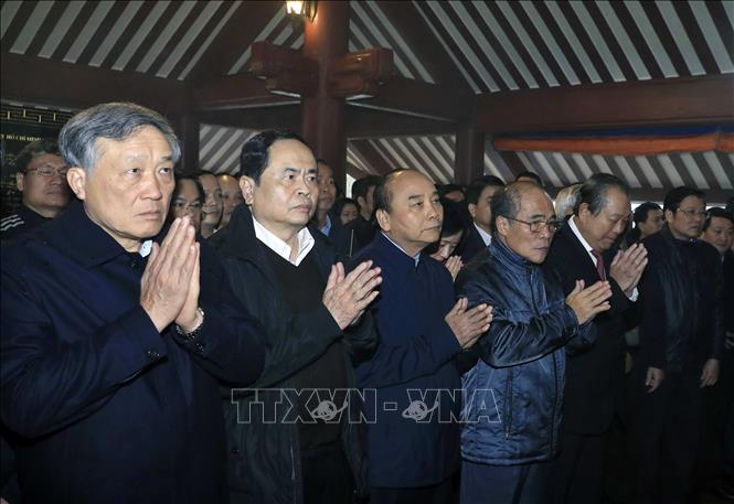 Thủ tướng Nguyễn Xuân Phúc dâng hương tưởng niệm Chủ tịch Hồ Chí Minh tại Đền thờ Bác Hồ trên Đỉnh Vua, Vườn quốc gia Ba Vì, Hà Nội. - Ảnh: Thống Nhất/TTXVN |