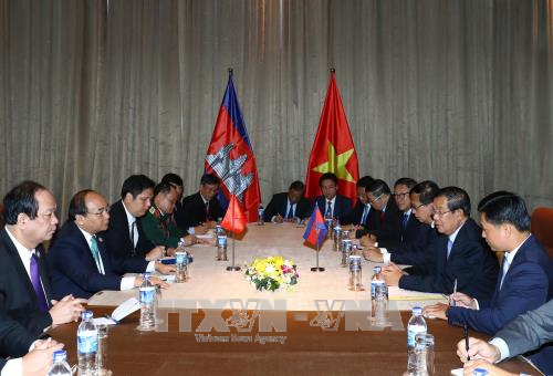 Tại cuộc gặp, hai Thủ tướng nhất trí tiếp tục chỉ đạo các bộ, ngành và địa phương hai nước tổ chức các hoạt động thiết thực trong Năm Hữu nghị Việt Nam-Campuchia 2017; duy trì trao đổi các chuyến thăm cấp cao; đẩy mạnh công tác phân giới cắm mốc biên giới trên đất liền; tăng cường các biện pháp xúc tiến thương mại, phấn đấu đạt mốc 5 tỷ USD vào năm 2020; và phối hợp giải quyết các vấn đề liên quan đến địa vị pháp lý của người gốc Việt tại Campuchia trên cơ sở luật pháp của Campuchia và tinh thần hữu nghị, hợp tác giữa hai nước.