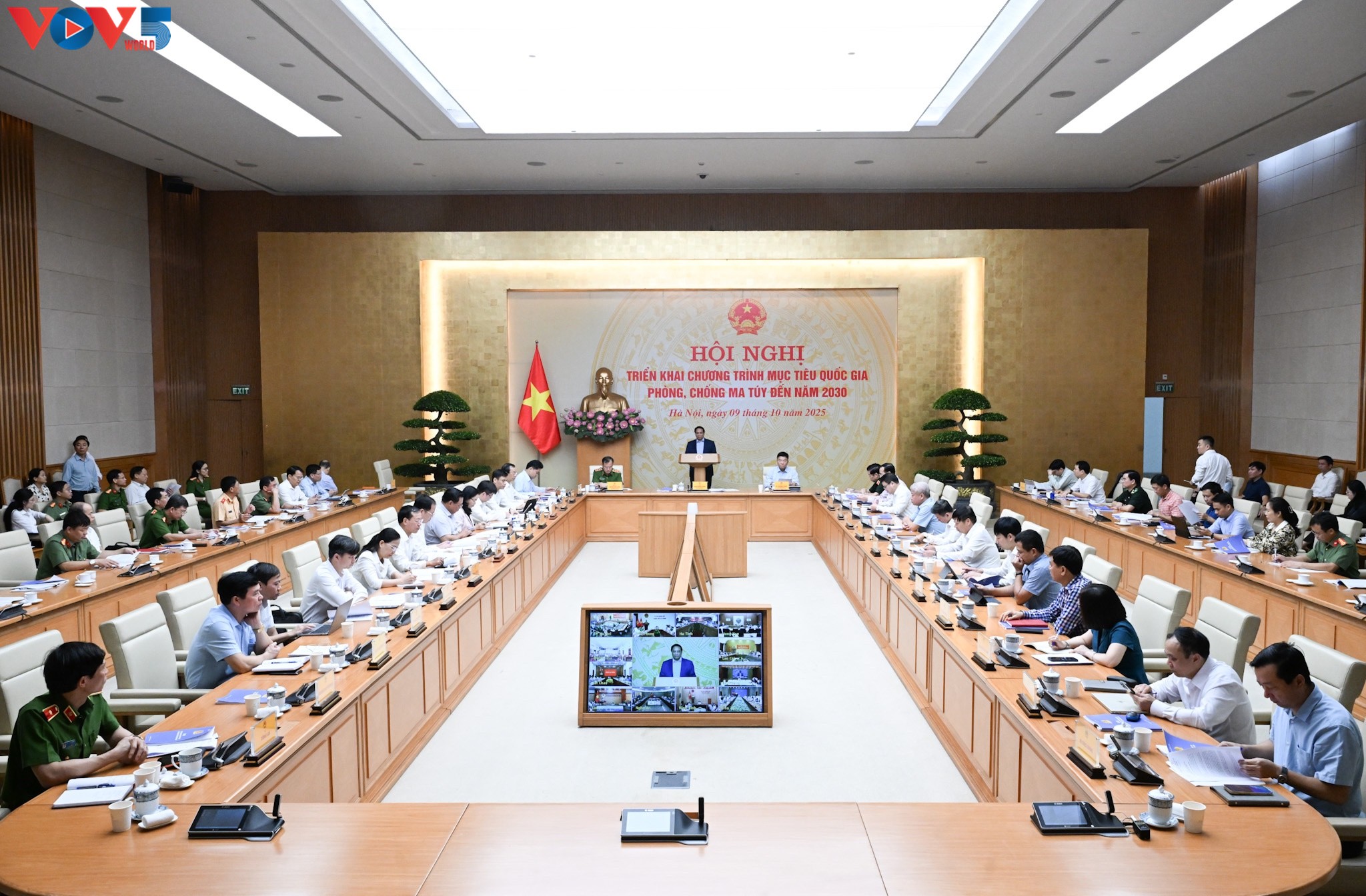 Sáng nay (09/10), Thủ tướng Phạm Minh Chính chủ trì Hội nghị trực tuyến toàn quốc triển khai Chương trình mục tiêu quốc gia phòng, chống ma túy đến năm 2030. Hội nghị được tổ chức trực tiếp tại Trụ sở Chính phủ, trực tuyến tới điểm cầu 34 tỉnh, thành phố và 3.321 xã, phường, đặc khu.