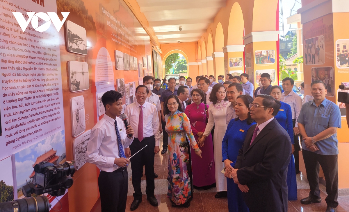 Tiếp đó, Thủ tướng tham quan triển lãm “Sài Gòn (Thành phố Hồ Chí Minh) những năm đầu thế kỷ 20 - nơi Nguyễn Tất Thành đến và đi tìm đường cứu nước” cũng trong khuôn viên Bảo tàng.