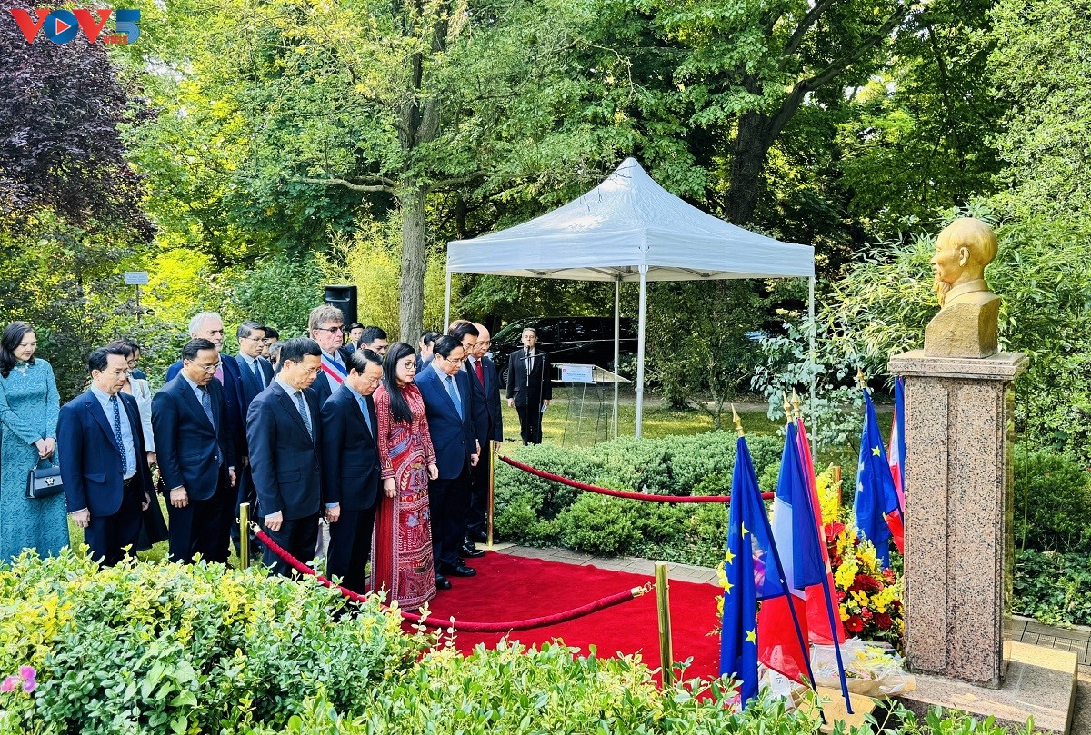 Thủ tướng Phạm Minh Chính và Phu nhân cùng các đại biểu tưởng niệm Chủ tịch Hồ Chí Minh. Ảnh: PV/VOV-Paris |
