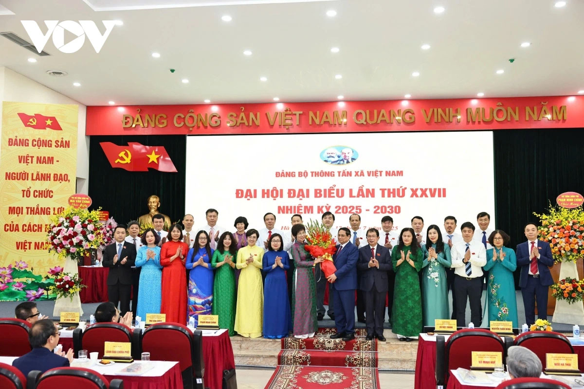 Thủ tướng Phạm Minh Chính dự Đại hội đại biểu Đảng bộ Thông tấn xã Việt Nam nhiệm kỳ 2025-2030. Ảnh: Vân Hồng/VOV1 |