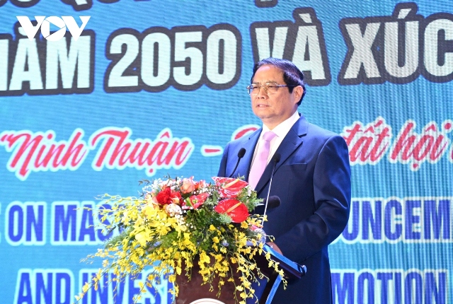 Thủ tướng Phạm Minh Chính dự Hội nghị công bố quy hoạch và xúc tiến đầu tư tỉnh Ninh Thuận. Ảnh: VOV |