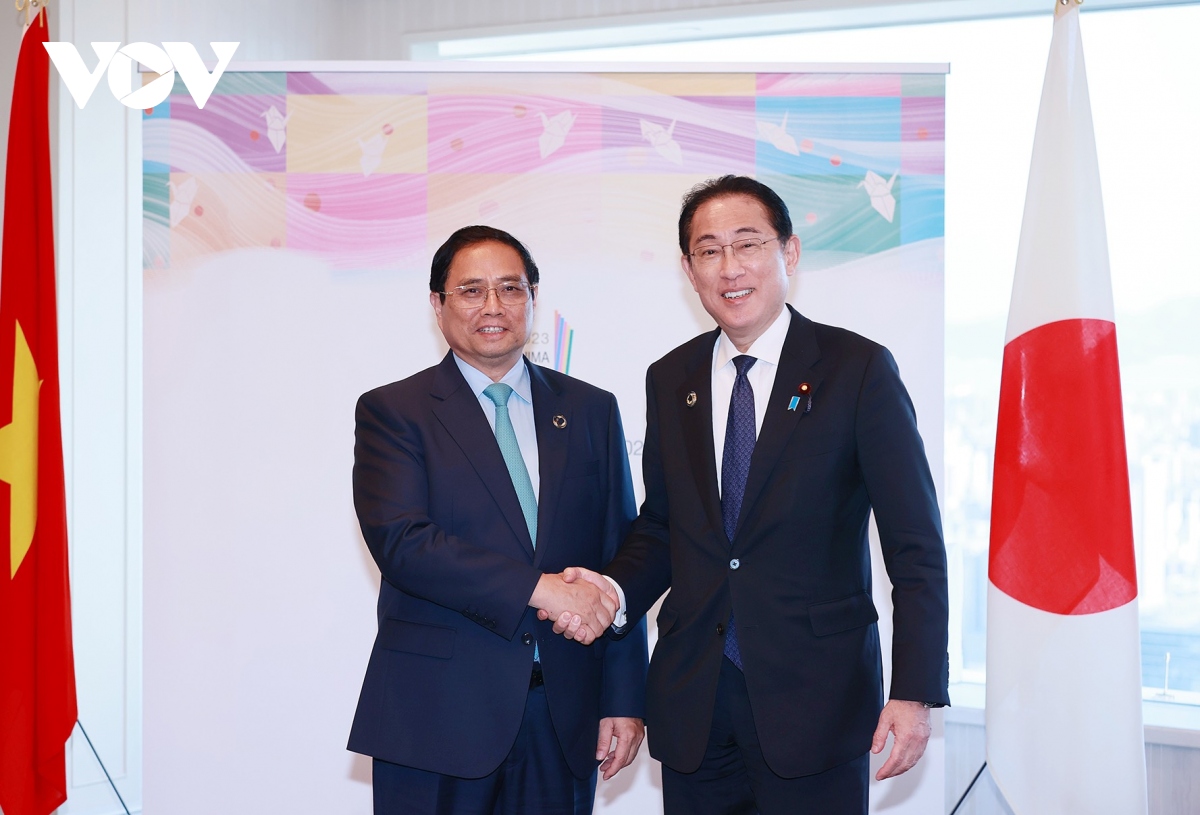 Tại cuộc gặp giữa Thủ tướng Phạm Minh Chính và Thủ tướng Nhật Bản Kishida Fumio, hai nhà lãnh đạo nhất trí về phương hướng lớn và các biện pháp cụ thể nhằm thúc đẩy quan hệ Đối tác chiến lược sâu rộng Việt Nam - Nhật Bản vì hòa bình và thịnh vượng ở châu Á lên tầm cao mới.