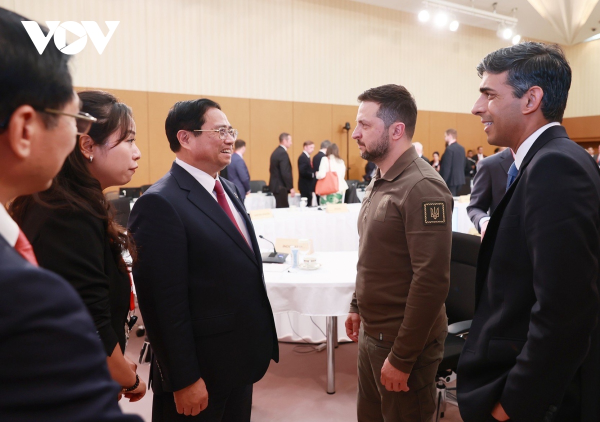 Thủ tướng Phạm Minh Chính gặp Tổng thống Ukraine Volodymyr Oleksandrovych Zelensky. Ảnh: VOV |
