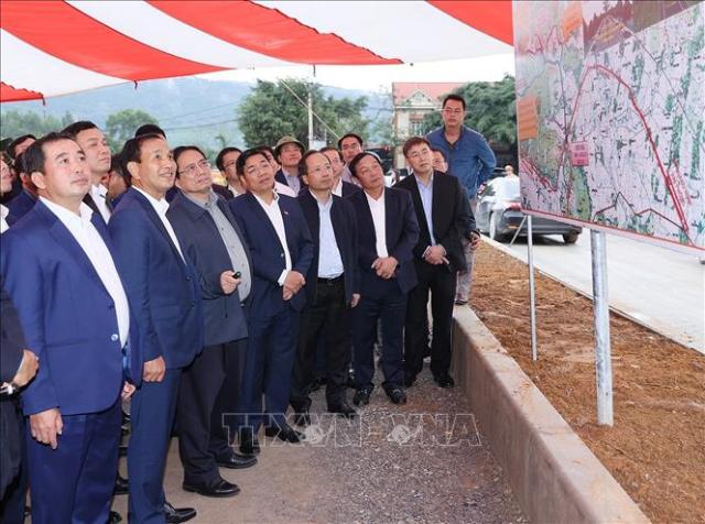 Thủ tướng Phạm Minh Chính kiểm tra dự án nâng cấp Quốc lộ 37 đoạn qua Khu Di tích quốc gia đặc biệt Côn Sơn - Kiếp Bạc. Ảnh: Dương Giang/TTXVN |
