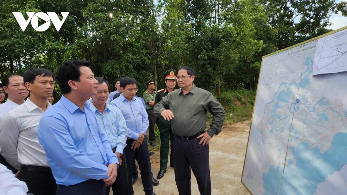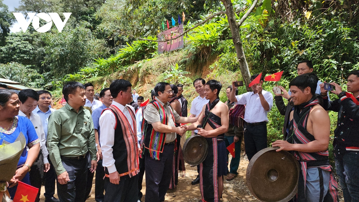 Thủ tướng Chính phủ Phạm Minh Chính cùng đoàn làm việc ở xã Tân Lập, huyện Kon Rẫy. Ảnh: VOV |