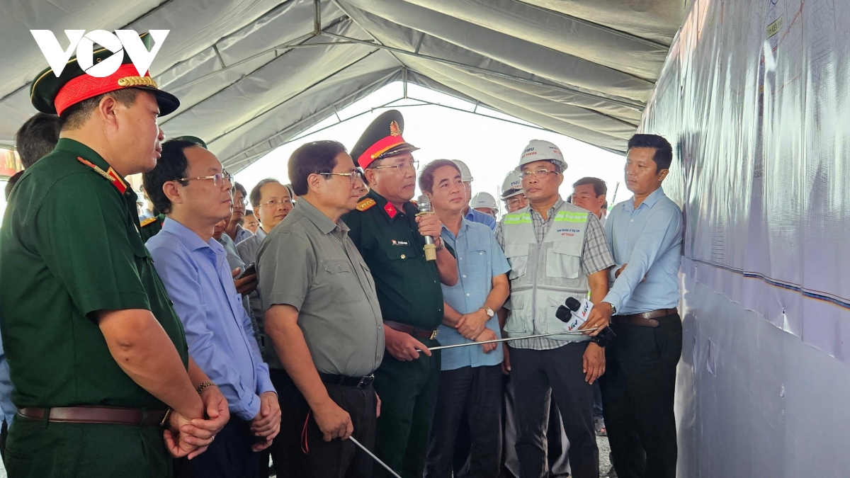 Tiếp đó, Thủ tướng Phạm Minh Chính đã làm việc với Binh đoàn 12, Tổng công ty Trường Sơn và các lực lượng thi công dự án cao tốc Bắc Nam đoạn Cần Thơ - Hậu Giang.