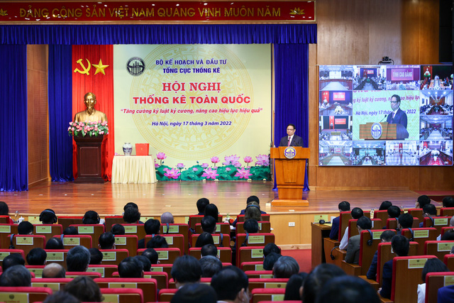 Sáng 17/3, Thủ tướng Phạm Minh Chính dự Hội nghị Thống kê toàn quốc năm 2022 với chủ đề "Tăng cường kỷ luật, kỷ cương; nâng cao hiệu lực, hiệu quả". Hội nghị được kết nối với 63 tỉnh, thành phố trong cả nước.