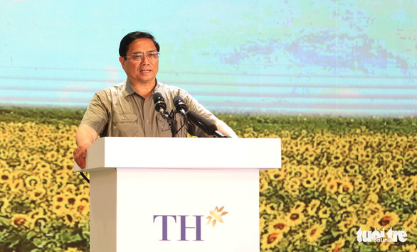 Thủ tướng Phạm Minh Chính đề nghị các doanh nghiệp, bà con nông dân, các nhà khoa học và cơ quan quản lý nhà nước cần tiếp tục phát triển mô hình kinh tế xanh, kinh tế tuần hoàn. Ảnh: Doãn Hòa/ Báo Tuổi Trẻ |