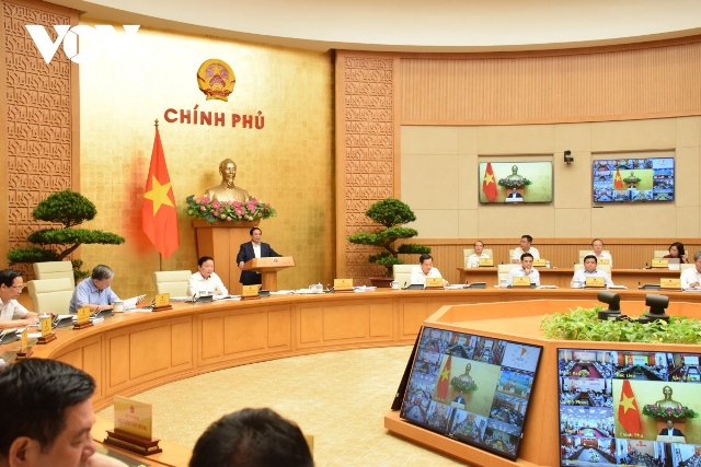 Sáng 3/6, tại Trụ sở Chính phủ, dưới sự chủ trì của Thủ tướng Phạm Minh Chính, Chính phủ họp phiên thường kỳ tháng 5 trực tuyến với các địa phương để đánh giá tình hình kinh tế - xã hội tháng 5 và 5 tháng đầu năm 2023; tình hình triển khai chương trình phục hồi và phát triển kinh tế - xã hội; tình hình phân bổ, giải ngân vốn đầu tư công; tình hình triển khai 3 Chương trình mục tiêu quốc gia; kết quả triển khai công tác lập quy hoạch theo quy định của Luật Quy hoạch; kết quả làm việc của các thành viên Chính phủ chủ trì đôn đốc, làm việc với các địa phương về tình hình sản xuất, kinh doanh, đầu tư công, xây dựng hạ tầng và xuất nhập khẩu.