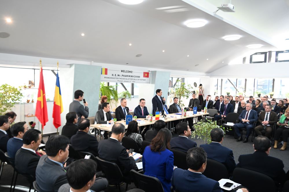 Phát biểu tại đây, Thủ tướng Phạm Minh Chính bày tỏ ấn tượng với bề dày hợp tác giữa Việt Nam với tỉnh Prahova và thành phố Ploiesti thuộc tỉnh này. Tỉnh Prahova và thành phố Ploiesti đã giúp đỡ Việt Nam đào tạo hơn 300 tiến sĩ, kỹ sư Việt Nam trong ngành dầu khí, đóng góp hiệu quả vào công cuộc phát triển kinh tế của Việt Nam trong hơn 30 năm qua. Thủ tướng cho biết Việt Nam đang tập trung phát triển chuyển đổi số, chuyển đổi xanh, kinh tế tuần hoàn. Việt Nam và Romania có thể thúc đẩy hợp tác trong những lĩnh vực này.