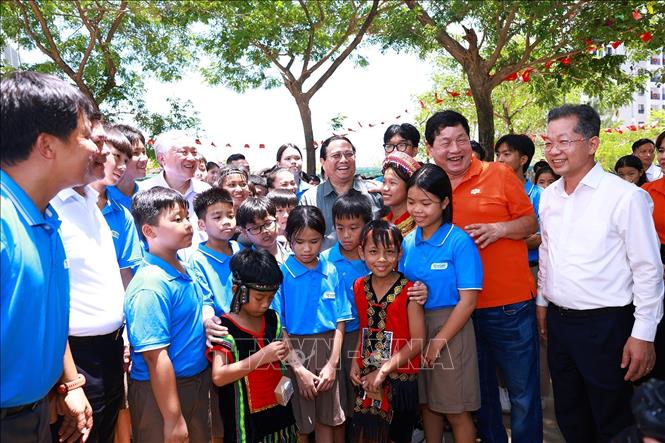 Thủ tướng Phạm Minh Chính với học sinh Trường Hy Vọng. Ảnh: Dương Giang/TTXVN |