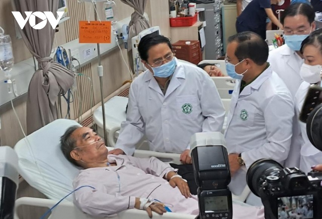 Thủ tướng thăm hỏi và kiểm tra công tác cấp cứu nạn nhân trong vụ cháy tại bệnh viên Bạch Mai, Hà Nội. |