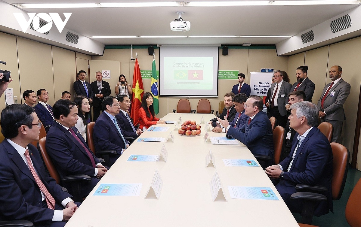 Phát biểu tại đây, Thủ tướng Phạm Minh Chính đề nghị các Nghị sĩ và Hạ viện, Thượng viện Brazil ủng hộ, thúc đẩy tiến trình đàm phán, ký kết các hiệp định thương mại giữa Việt Nam – Brazil, giữa Việt Nam với Khối thị trường chung Nam Mỹ (MERCOSUR), giữa Brazil với Hiệp hội các nước Đông Nam Á (ASEAN) và giữa MERCOSUR với ASEAN; cũng như Hiệp định bảo hộ đầu tư, Hiệp định tránh đánh thuế hai lần… Cùng với đó, hai bên cần thúc đẩy mạnh mẽ hơn nữa hợp tác trong các lĩnh vực văn hóa, du lịch, thể thao…