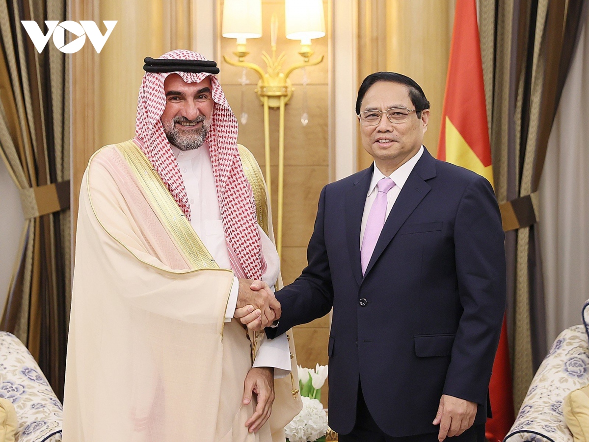Chiều cùng ngày, Thủ tướng Phạm Minh Chính tiếp ông Yasir Al-Rumayyan, Thống đốc Quỹ đầu tư công Saudi Arabia – Quỹ thuộc quản lý của Hội đồng các vấn đề kinh tế và phát triển quỹ do Hoàng Thái tử Mohammed bin Salman làm Chủ tịch, với số vốn ước tính lên tới 620 tỷ USD, là một trong 10 Quỹ đầu tư công lớn nhất thế giới. Thủ tướng đề nghị thời gian tới, Quỹ mở rộng và đa dạng hóa hoạt động đầu tư dưới các hình thức trực tiếp, gián tiếp, hợp tác nhiều bên, vào các lĩnh vực Việt Nam ưu tiên, như: chuyển đổi số, kinh tế xanh, kinh tế tuần hoàn, đổi mới sáng tạo, năng lượng tái tạo, công nghệ cao, công nghiệp, du lịch, công nghiệp Halal... đặc biệt là hạ tầng giao thông, như: đường sắt, đường kết nối liên vùng, đô thị và chống biến đổi khí hậu, nhất là tại vùng Đồng bằng sông Cửu long. Thủ tướng cũng đề nghị hai bên nghiên cứu thành lập Quỹ đầu tư chung để thực hiện các dự án đầu tư tại mỗi nước, như Việt Nam và Oman và một số nước đã triển khai thành công.