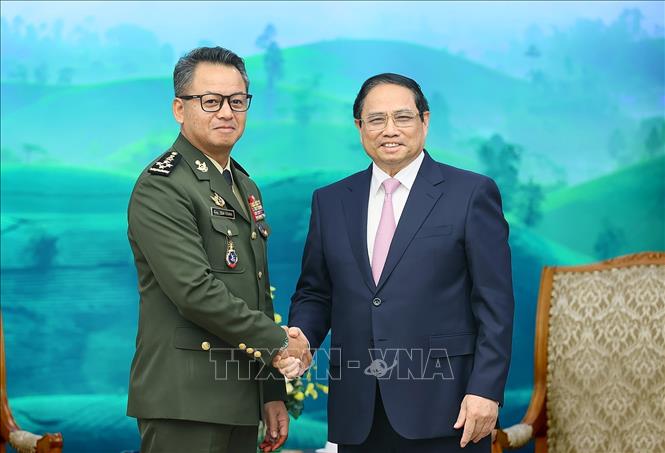 Thủ tướng Phạm Minh Chính tiếp Đại tướng Tea Seiha, Phó Thủ tướng, Bộ trưởng Quốc phòng Campuchia. Ảnh: Dương Giang – TTXVN |