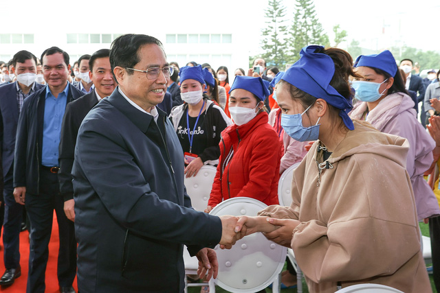 Phát biểu tại các nơi đến thăm, Thủ tướng nhấn mạnh: Năm 2022, các nhiệm vụ trọng tâm là tiếp tục thần tốc hơn nữa trong thực hiện chiến dịch tiêm chủng vaccine, triển khai hiệu quả chương trình tổng thể phòng chống dịch, chương trình phục hồi và phát triển kinh tế xã hội, bảo vệ vững chắc độc lập, chủ quyền, toàn vẹn lãnh thổ, giữ vững ổn định chính trị, an ninh, an toàn, an dân… Đồng thời, quan tâm hơn nữa công tác xây dựng nhà ở cho công nhân với việc tăng cường lãnh đạo chỉ đạo, quy hoạch, xây dựng cơ chế, chính sách, bố trí nguồn lực…