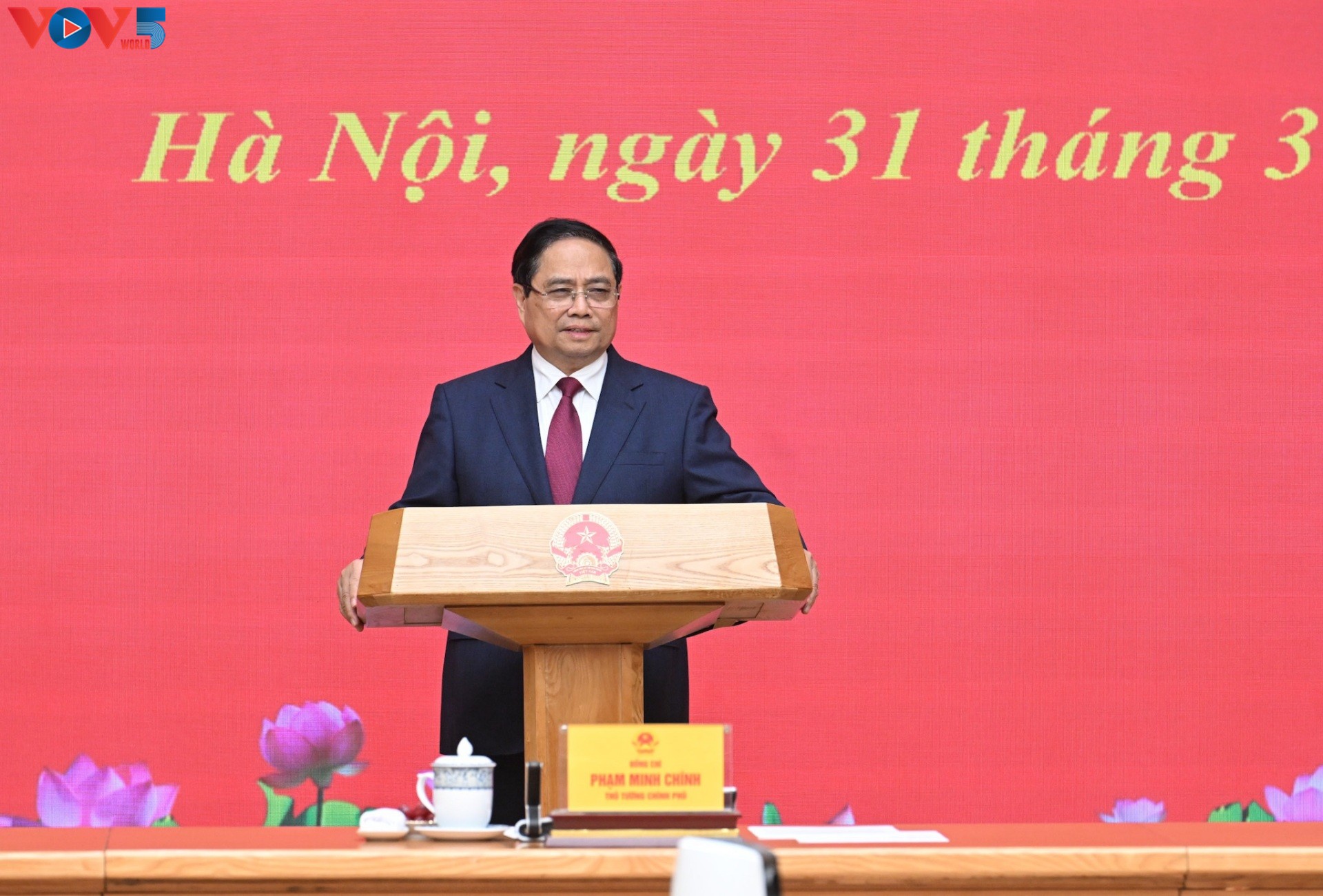 Thủ tướng Phạm Minh Chính phát biểu tại Lễ trao quyết định. Ảnh: Lại Hoa/VOV |
