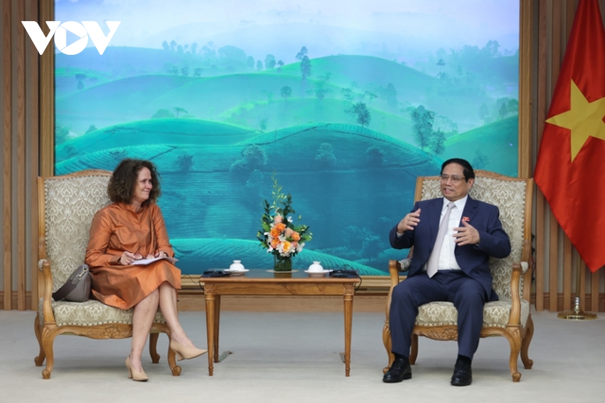 Thủ tướng Phạm Minh Chính và bà Carolyn Turk, Giám đốc Quốc gia Ngân hàng Thế giới (WB) tại Việt Nam. Ảnh: VOV |