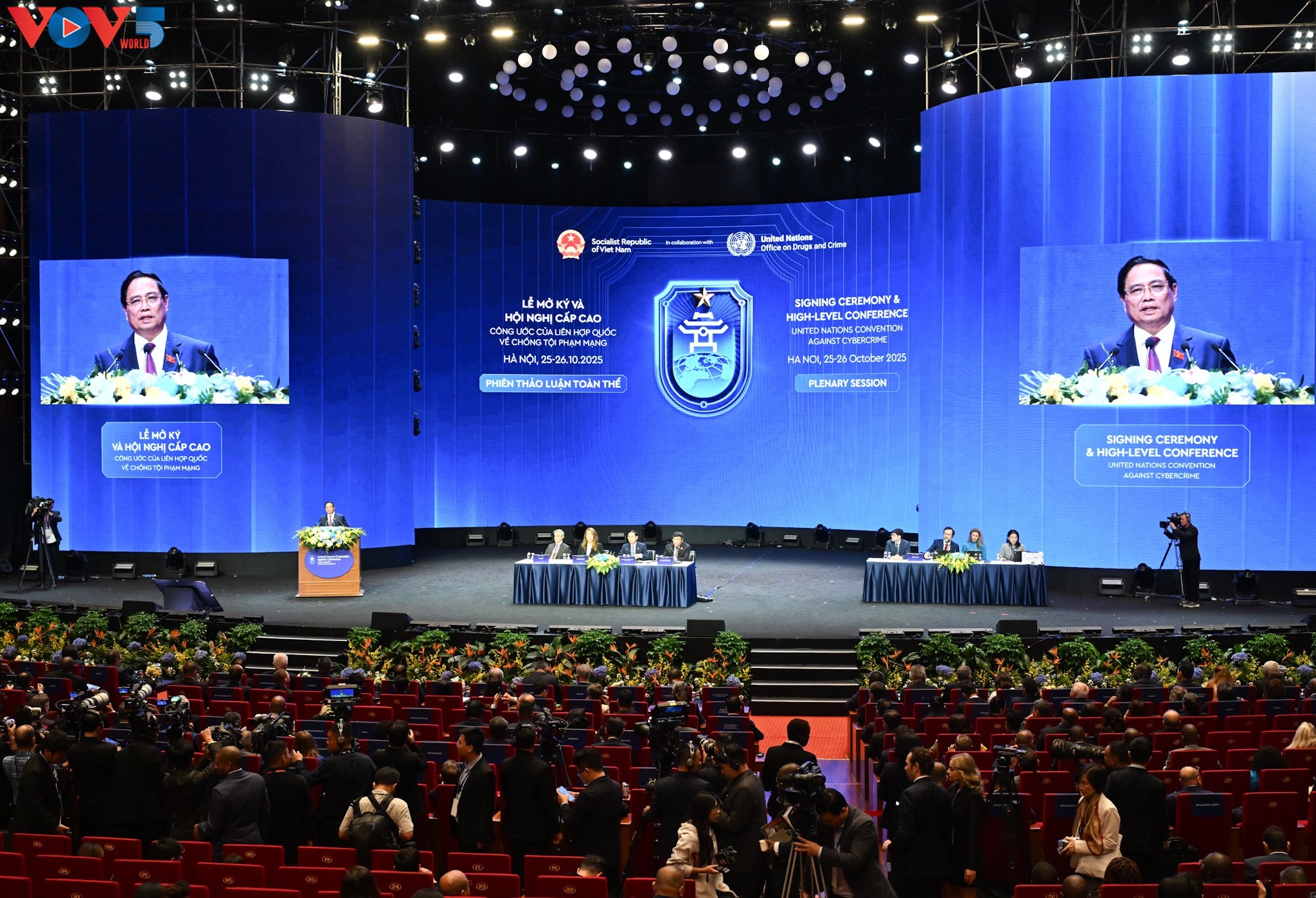 Chiều nay (25/10), trong khuôn khổ Lễ mở ký Công ước của Liên hợp quốc về chống tội phạm mạng (Công ước Hà Nội), diễn ra phiên thảo luận toàn thể với sự tham gia của Thủ tướng Chính phủ Việt Nam Phạm Minh Chính, Tổng thư ký Liên Hợp Quốc (LHQ) Antonio Guterres và đại diện nhiều quốc gia, tổ chức quốc tế.