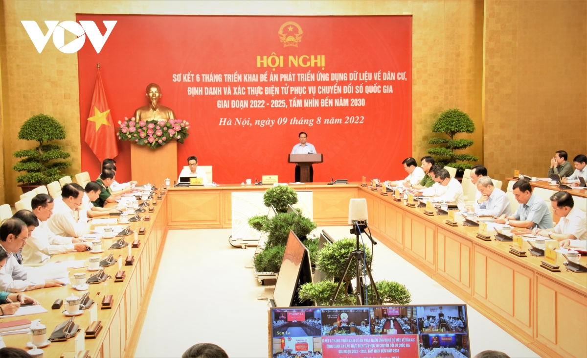 Sáng 9/8, Thủ tướng Chính phủ Phạm Minh Chính, Chủ tịch Ủy ban quốc gia về chuyển đổi số, chủ trì Hội nghị trực tuyến toàn quốc sơ kết 06 tháng triển khai Đề án phát triển ứng dụng dữ liệu về dân cư, định danh và xác thực điện tử phục vụ chuyển đổi số quốc gia giai đoạn 2022-2025, tầm nhìn đến năm 2030 (Đề án 06).