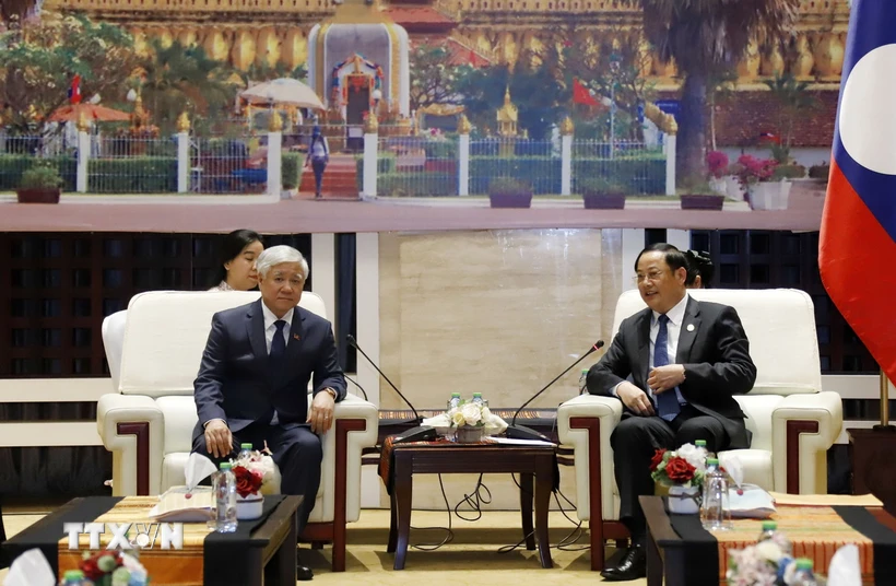 Thủ tướng Lào Sonexay Siphandone tiếp Chủ tịch Ủy ban Trung ương Mặt trận Tổ Quốc Việt Nam Đỗ Văn Chiến. Ảnh: Phạm Kiên/TTXVN |