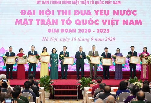 Phát biểu tại Đại hội Thi đua yêu nước Mặt trận Tổ quốc (MTTQ) Việt Nam giai đoạn 2020-2025, sáng 18/9, tại Hà Nội, Thủ tướng Nguyễn Xuân Phúc đánh giá cao việc MTTQ đã làm tốt công tác vận động, hỗ trợ giúp đỡ người nghèo, thăm hỏi, chia sẻ, hỗ trợ nhân dân lúc khó khăn.