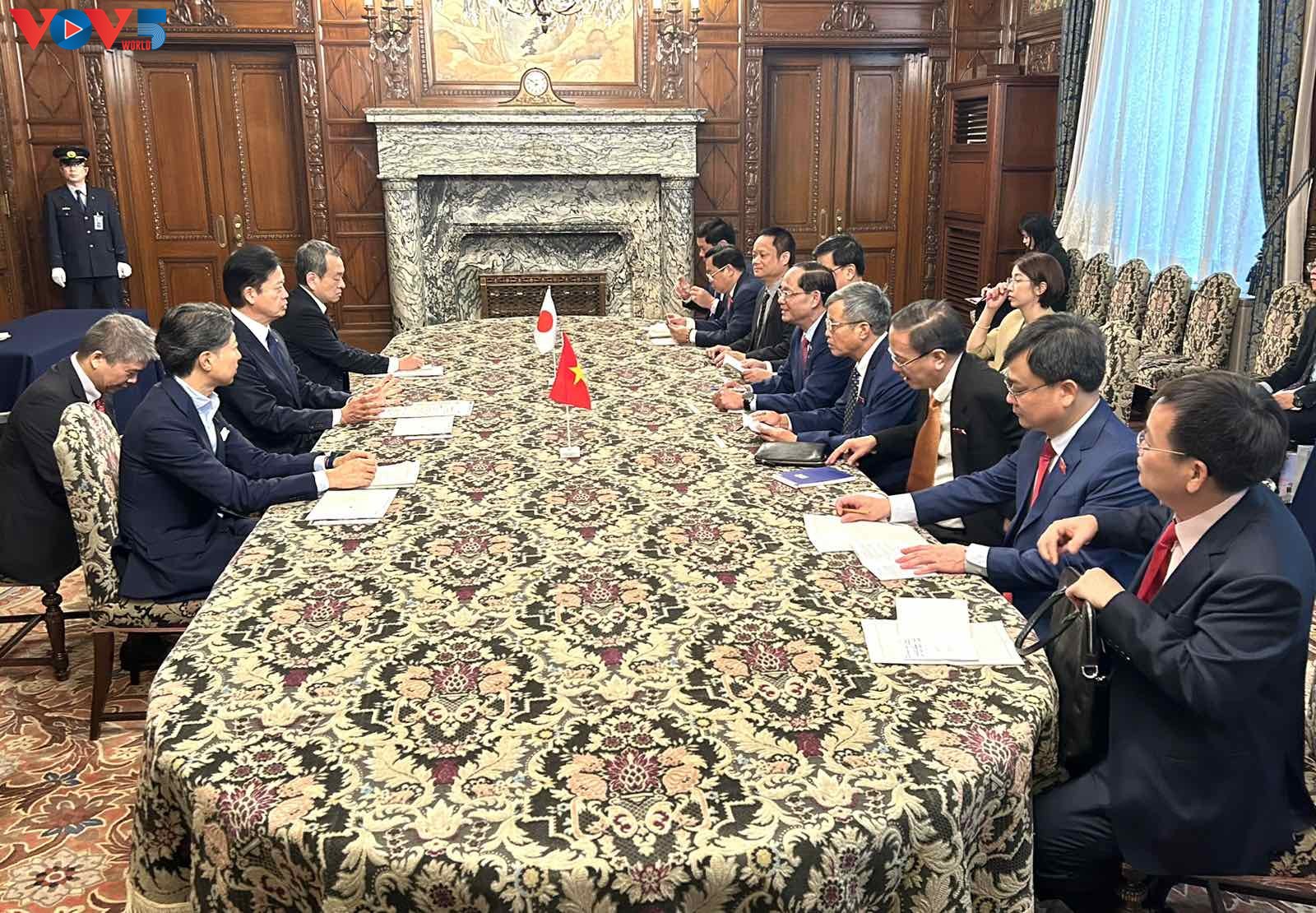 Phó Chủ tịch Quốc hội Trần Quang Phương làm việc với Chủ tịch Thượng viện Nhật Bản Sekiguchi Masakazu. Ảnh: VOV |