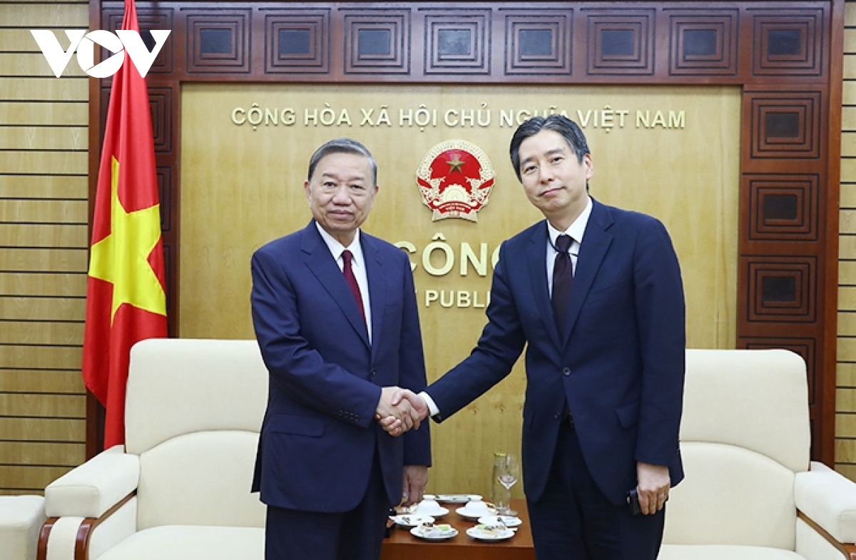 Bộ trưởng Tô Lâm tiếp ngài Hayakawa Yuho, Vụ trưởng Vụ Đông Nam Á và Thái Bình Dương, Cơ quan Hợp tác Quốc tế Nhật Bản (JICA). Ảnh: Việt Cường/ VOV1 |