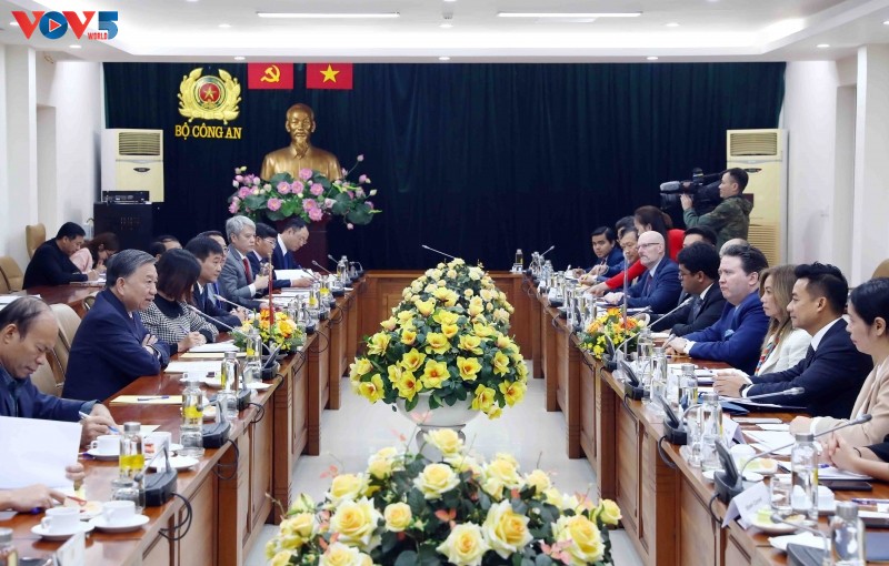 Bộ trưởng Tô Lâm tiếp đoàn doanh nghiệp thành viên Hội đồng Kinh doanh Hoa Kỳ - ASEAN. Ảnh: Việt Cường/ VOV |