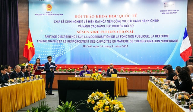 Hội thảo Khoa học quốc tế Chia sẻ kinh nghiệm về hiện đại hóa nền công vụ, cải cách hành chính và nâng cao năng lực chuyển đổi số. Ảnh: Hà Thảo/VOV |