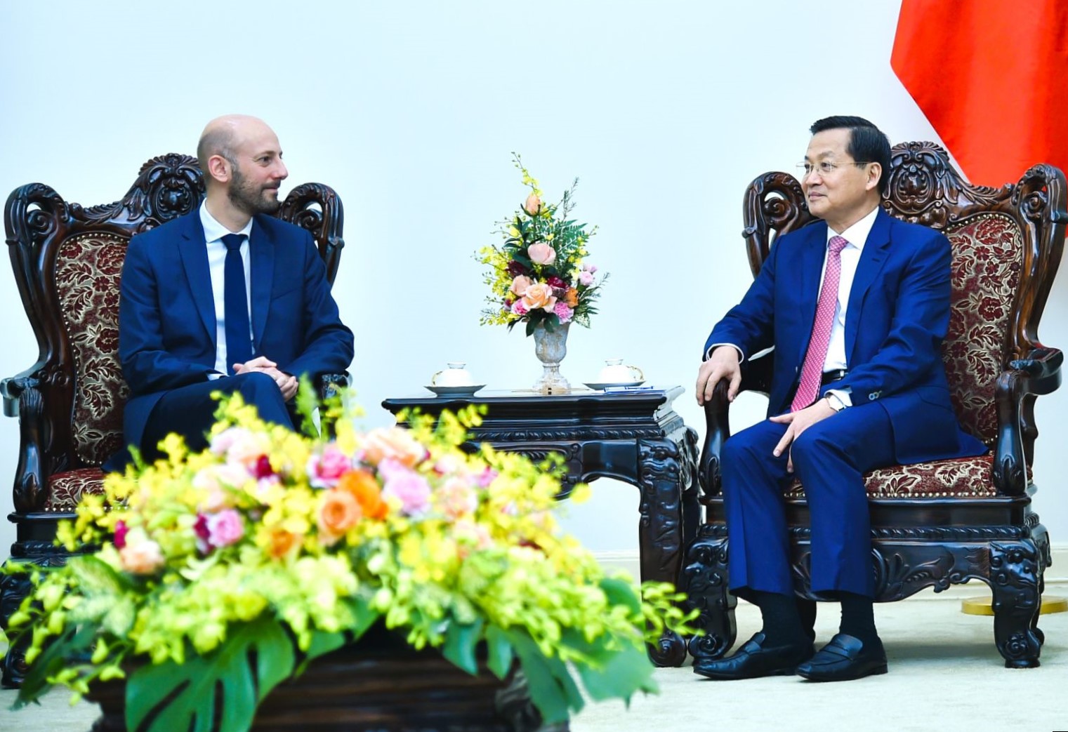 Phó Thủ tướng Chính phủ Lê Minh Khái tiếp Bộ trưởng Bộ Chuyển đổi và Công vụ Pháp Stanislas Guérini. Ảnh VGP/Trần Mạnh |
