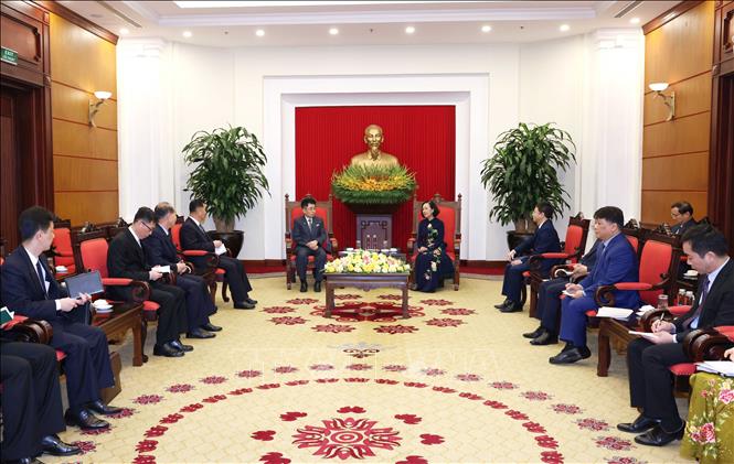 Thường trực Ban Bí thư Trương Thị Mai tiếp Đoàn đại biểu Đảng Lao động Triều Tiên. Ảnh: Phương Hoa - TTXVN |