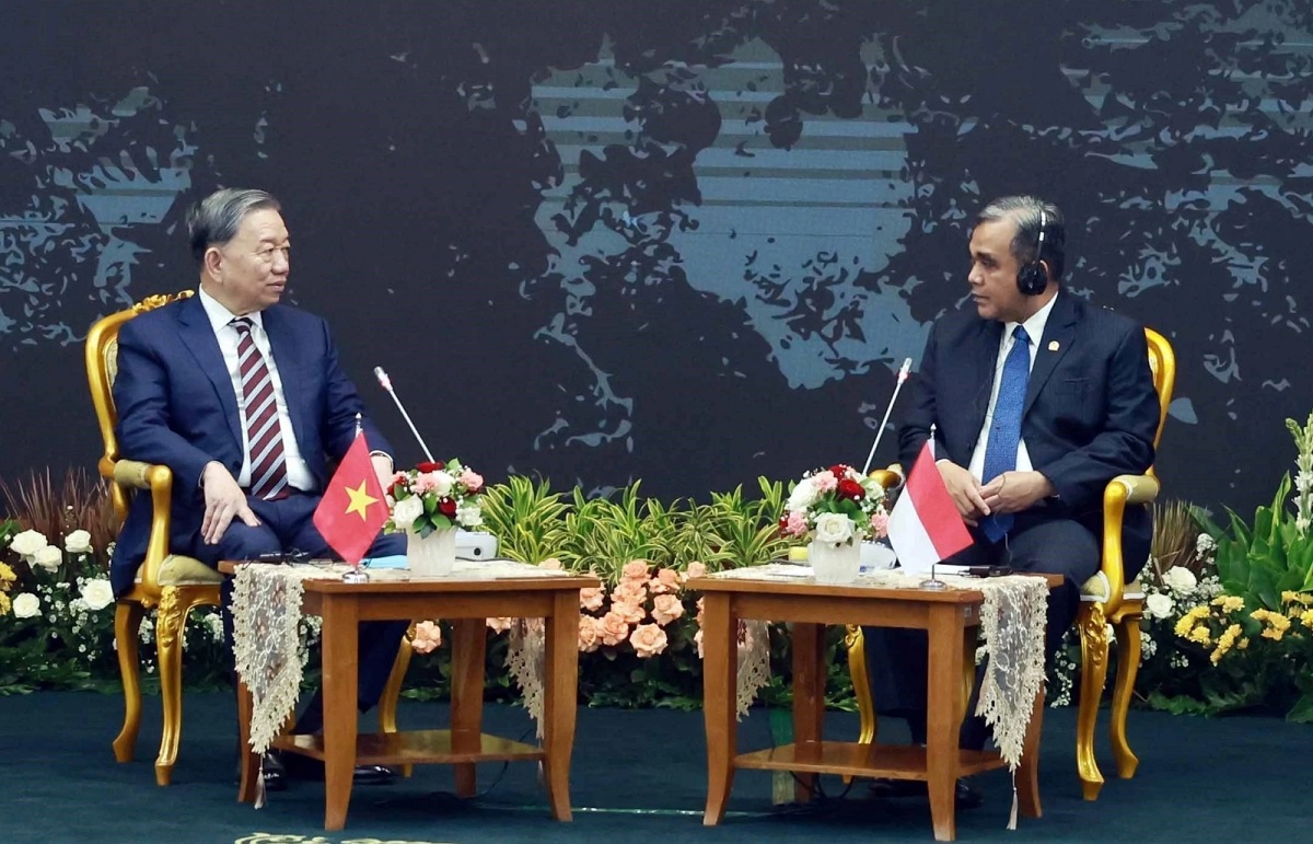 Tổng Bí thư Tô Lâm gặp Chủ tịch Hội đồng Đại biểu địa phương Indonesia Sultan Bachtiar Najamudin - Ảnh: TTXVN |