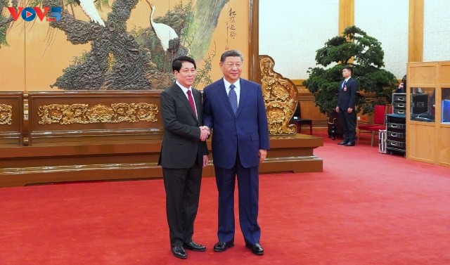Tổng Bí thư, Chủ tịch nước Trung Quốc Tập Cận Bình tiếp Thường trực Ban Bí thư Lương Cường cùng đoàn công tác Đảng Cộng sản Việt Nam. Ảnh: PV/VOV-Bắc Kinh |