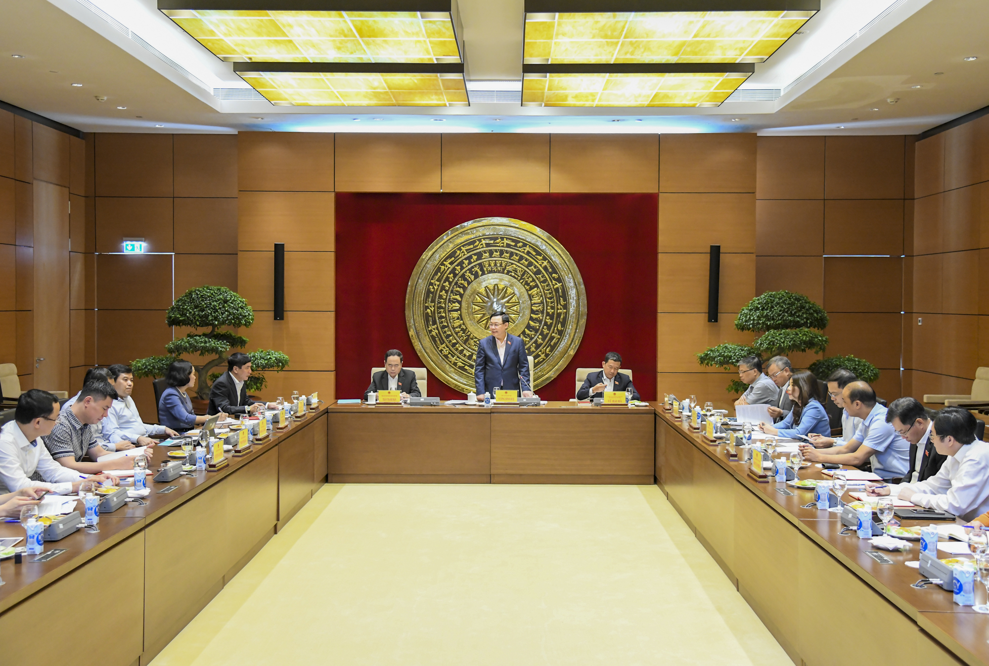Toàn cảnh buổi làm việc của Chủ tịch Quốc hội Vương Đình Huệ với Thường trực Ủy ban Đối ngoại của Quốc hội. Ảnh: quochoi.vn