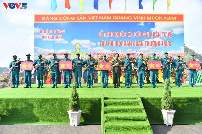 Ngày 28/3, tại Cảng Hang Tiền, huyện Kiên Lương, Bộ Chỉ huy Quân sự tỉnh Kiên Giang tổ chức lễ trao Quốc kỳ, cờ dân quân tự vệ tàu Hải đội dân quân thường trực tỉnh.