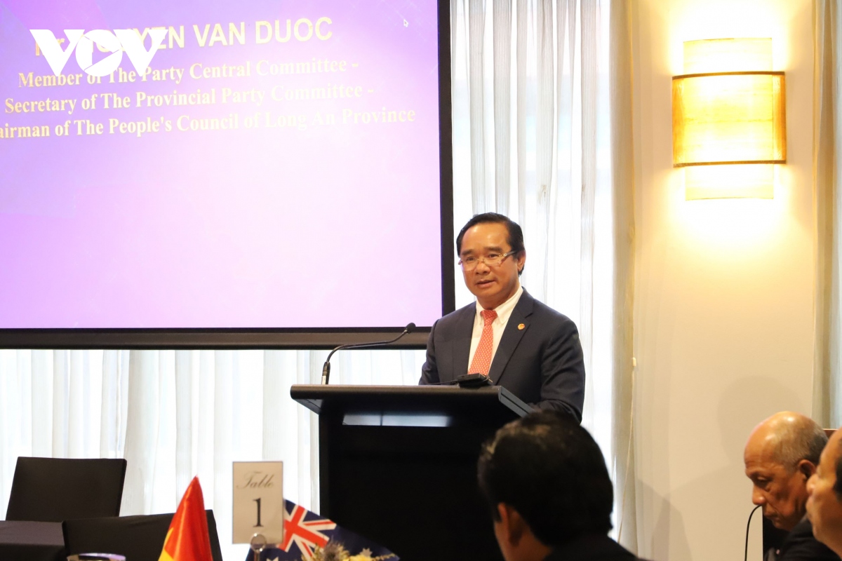Phát biểu tại đây, ông Nguyễn Văn Được chia sẻ hiện Australia đầu tư 75 triệu USD, xếp hạng 15 trong tổng số các quốc gia đầu tư vào Long An. Các nhà đầu tư Australia đã có những đóng góp tích cực vào phát triển kinh tế - xã hội của tỉnh.