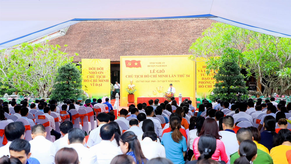 (VOV5) - Sáng nay (5/9) (ngày 21/7 năm Quý Mão), tại Nhà tưởng niệm Chủ tịch Hồ Chí Minh, Khu Di tích Quốc gia đặc biệt Kim Liên, UBND huyện Nam Đàn và tỉnh Nghệ An tổ chức Lễ tưởng niệm nhân 54 năm Ngày Chủ tịch Hồ Chí Minh từ trần (21/7 năm Kỷ Dậu 1969 - 21/7 năm Quý Mão 2023).